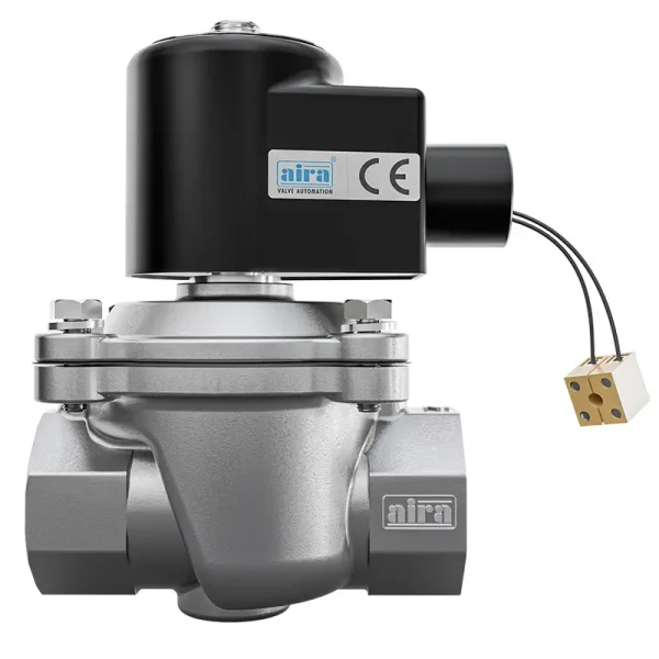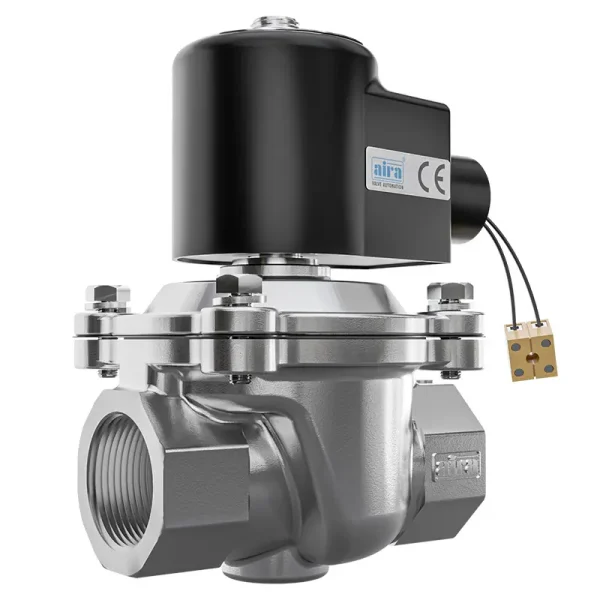 “aira” Offers 2/2 way semi Lift, high performance diaphragm type solenoid Valves, for high volume and low pressure application in air, gas, water, vacuum, light oil, corrosive fluids. available in normally close and normally open design.