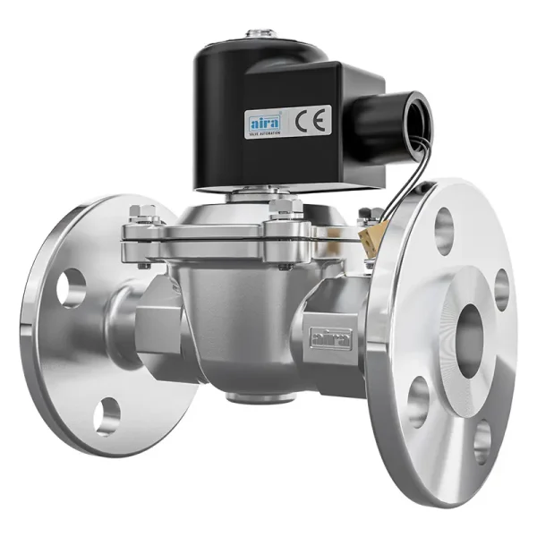 “aira” Offers 2/2 way semi Lift, high performance diaphragm type solenoid Valves, for high volume and low pressure application in air, gas, water, vacuum, light oil, corrosive fluids. available in normally close and normally open design.