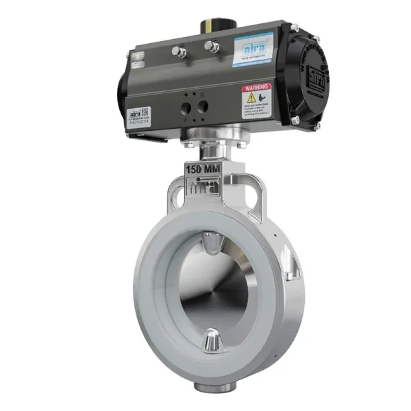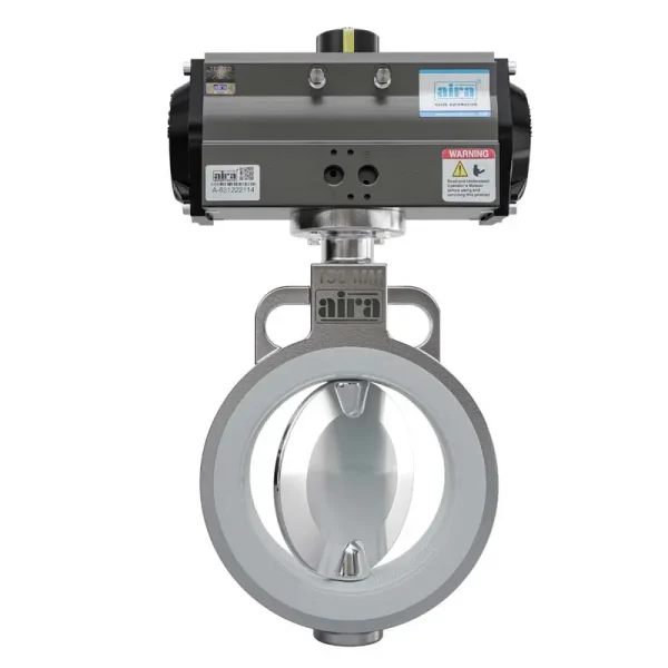 Aira Euro Automation Offer Pneumatic Actuator Operated Techo Model S.G. Iron / CF8 / CF8M Body & CF8 / CF8M Disc 2 Piece Body Teflon Sleeve Butterfly Valve with Mirror Finish Disc PN 10 (Replaceable Muffler)