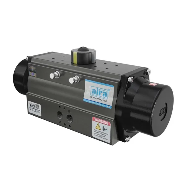 7 – Compact Design “aira” Actuators are designed as compact double acting which offers high torque values. Internal sliding surface, machined and anodized for minimum friction and long life of actuator