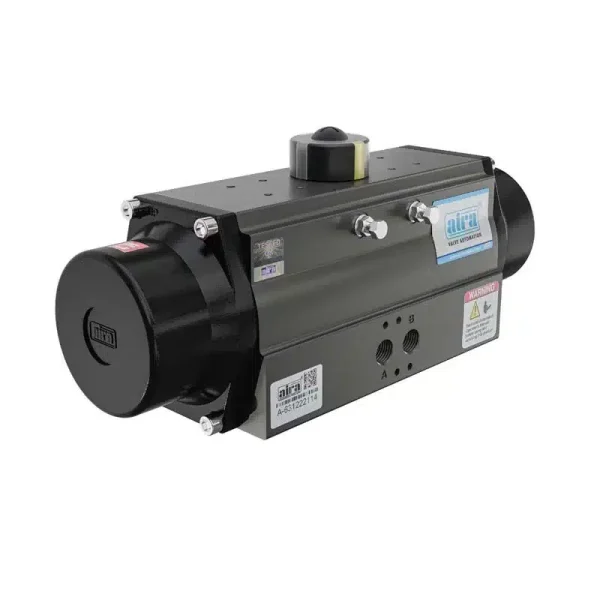 Aira Euro Automation manufacturer and exporter of Single Acting Pneumatic Actuator. It works on the Rack and Pinion Type transmission method. This single acting pneumatic actuator’s Body is made from Extruded Aluminium Hard Anodized, and Caps and Rack made from Aluminium Pressure Die Cast. We used EN 8 for Pinion and BUNA – N / VITON for Seals. This single acting actuator designed as per ISO 5211 for that actuator keeps mounting quickly and easily. The normal Air supply pressure for this actuator is 4Kg/cm2 and the maximum Air supply pressure is 7Kg/cm2. It is available in 90°/ 180° rotation with up to 6356NM torque.