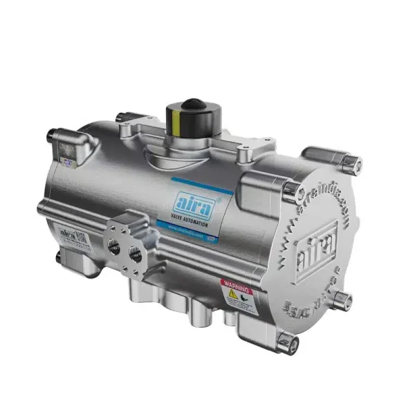 “aira” Offers pneumatic actuators are stainless steel actuator which incorporate latest mechanical technology, materials available and our expertises, through designing, developing, testing and engineering application, we have obtained a high grade product with the characteristics of reliability, high performance, long cycle life, large adjustment, highest levels of corrosion protection, wide selection of model with easy and economy.