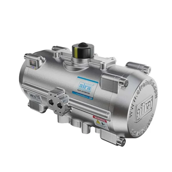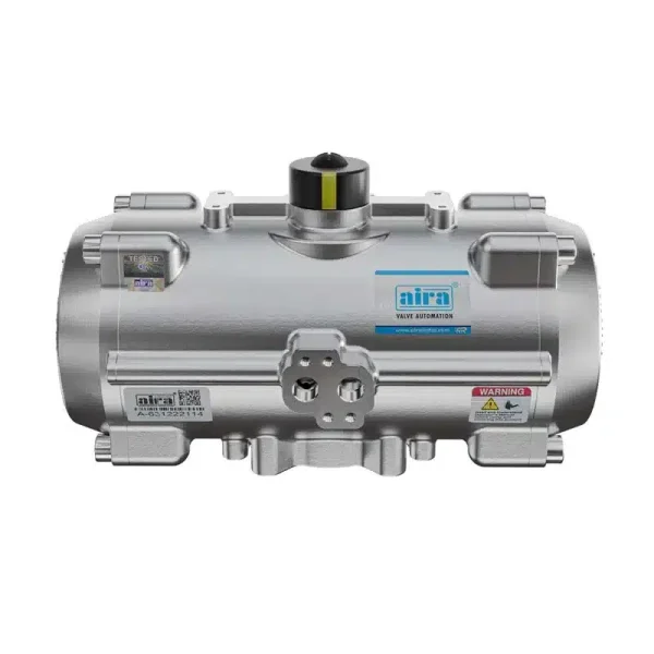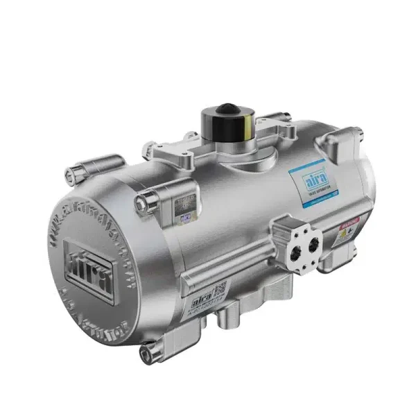 Aira Euro Automation offers stainless steel 304 rotary actuators for corrosive environments. The rack and pinion transmitted rotary actuator is available in single-acting and double acting actuation. It is designed as per international standard ISO 5211 for easy and quick mounting. With 90° rotation, this actuator can produce torque up to 1069 NM. To operate this actuator, the normal air supply pressure is required from 4Kg/cm² to maximum 8Kg/cm².