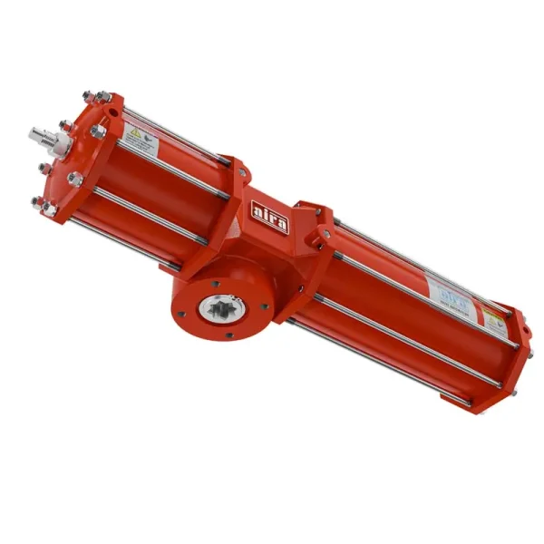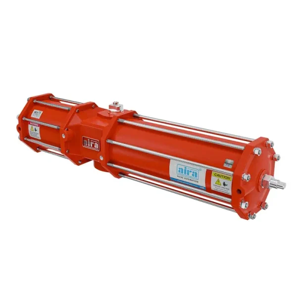“aira” Offers SAY-SA Series heavy duty Scotch Yoke Actuators offer a broad range of torques to 116984 NM. The Scotch & Yoke is designed to operate Ball, Butterfly, Plug Valves, Dampers or any device that requires a quarter-turn movement for on-off or throttling services. Our standard offering is te symmetrical design yoke that delivers maximum torque at both ends of the 90o cycle. The square sliding bearing with guide bar gives high cycle life and smooth stroke while minimizing wear points. As with all “aira” actuators, our Scotch & Yoke comes with a complete line of accessories, including jack screw, hydraulic overrides, limit switches, solenoids and positioners…