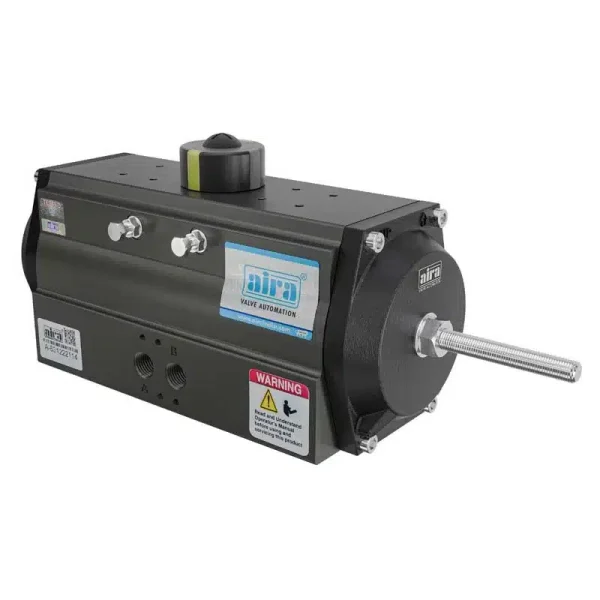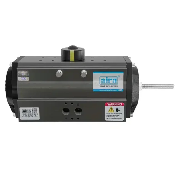 “aira” Euro Automation offers a wide range of double-acting pneumatic actuators including rack & pinion transmission methods. We use Extruded Aluminium Hard Anodized for the body and Aluminium Pressure Die Cast for caps & rack. While the pinions are made from EN8 and the seals are available in BUNA – N and in Viton. In the making of our products, we use only high-graded quality raw materials. We maintain the international standard and designed it as per ISO 5211. Due to this design, the mounting becomes quick and easy with any valve