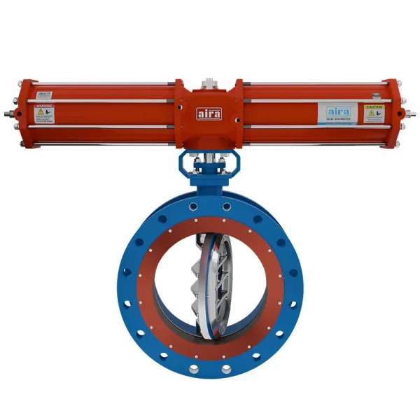 “aira” triple eccentric butterfly valves are metal-to-metal seated, offering zero leakage, bi-directional flow control, and low emissions. They are suitable for extreme temperatures from -10°C to 400°C, with a triple offset sealing system that ensures friction-free operation and adaptability to temperature fluctuations.